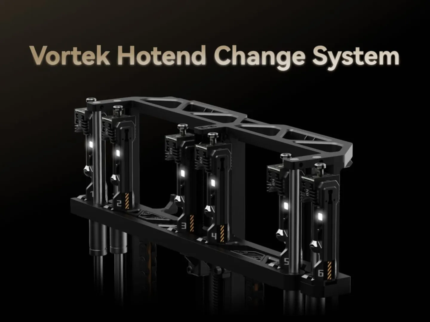 - The Vortek Rack: Mounted at the back of the massive 325 ร 320 ร 325 mm build volume is a motorized rack holding up to 6 independent “Vortek” hotend nozzles.